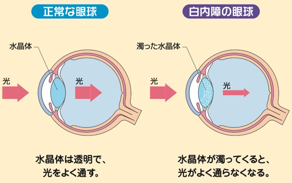 これらの影響により、水晶体のタンパク質が変性すると、 本来の透明性が失われ、光がうまく通らなくなります。